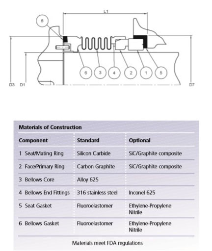 Торцевые уплотнения GL1H (уплотнение валов картриджного типа с металлическим сильфоном)